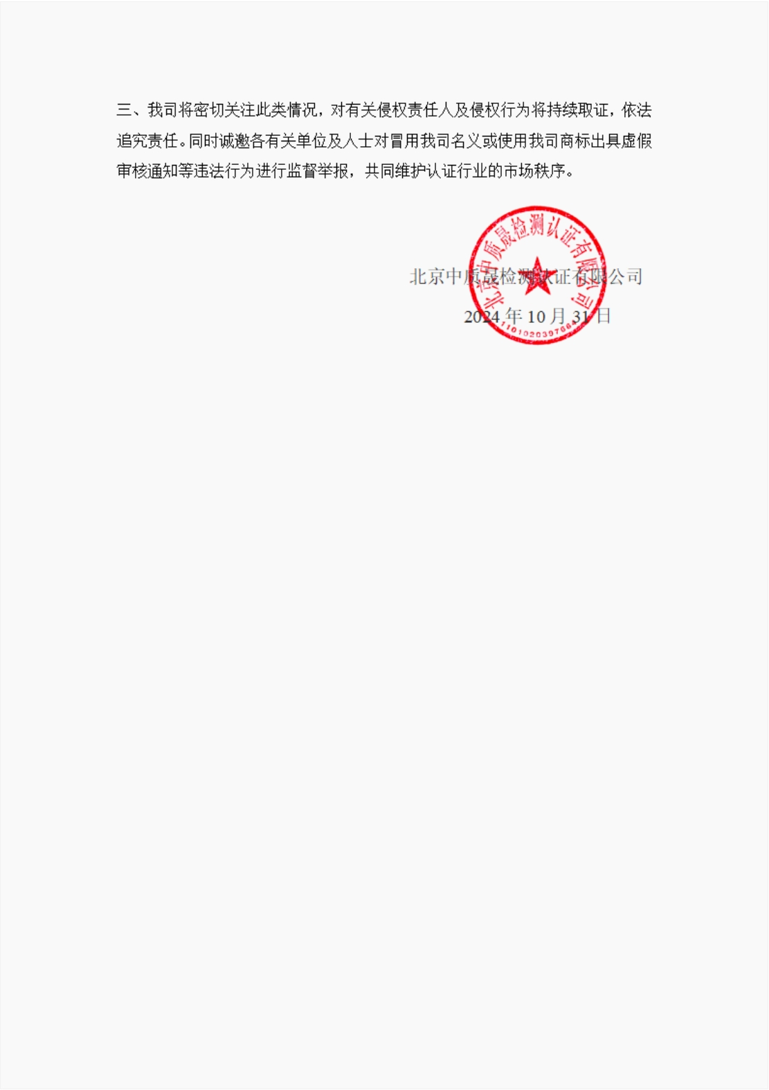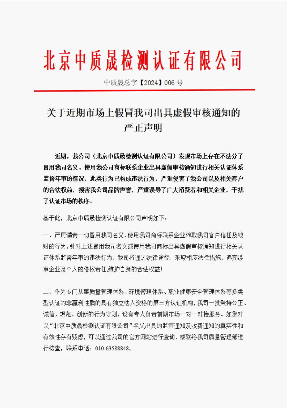 關(guān)于近期市場上假冒我司出具虛假審核通知的嚴正聲明