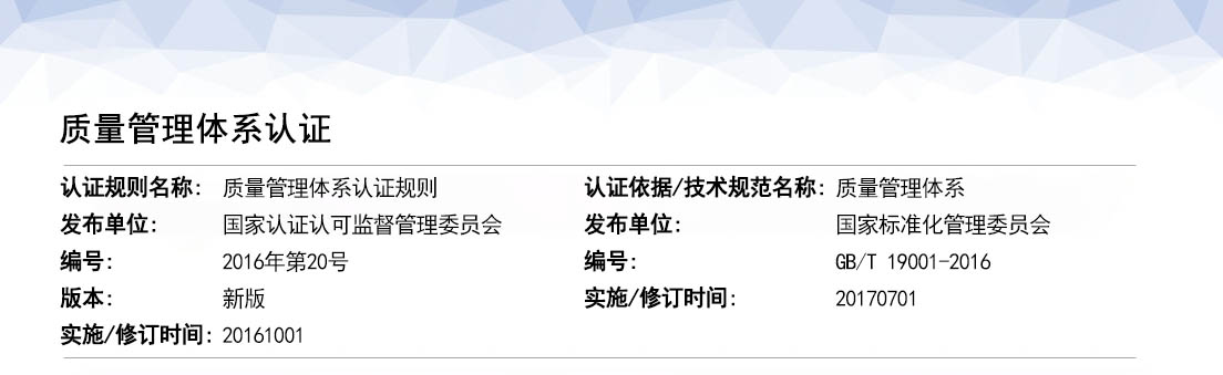 質(zhì)量管理體系認(rèn)證是指由取得質(zhì)量管理體系認(rèn)證資格的第三方認(rèn)證機(jī)構(gòu),依據(jù)正式發(fā)布的質(zhì)量管理體系標(biāo)準(zhǔn),對(duì)企業(yè)的質(zhì)量管理體系實(shí)施評(píng)定,評(píng)定合格的由第三方機(jī)構(gòu)頒發(fā)質(zhì)量管理體系認(rèn)證證書,并給予注冊(cè)公布,以證明企業(yè)質(zhì)量管理和質(zhì)量保證能力符合相應(yīng)標(biāo)準(zhǔn)或有能力按規(guī)定的質(zhì)量要求提供產(chǎn)品的活動(dòng)。