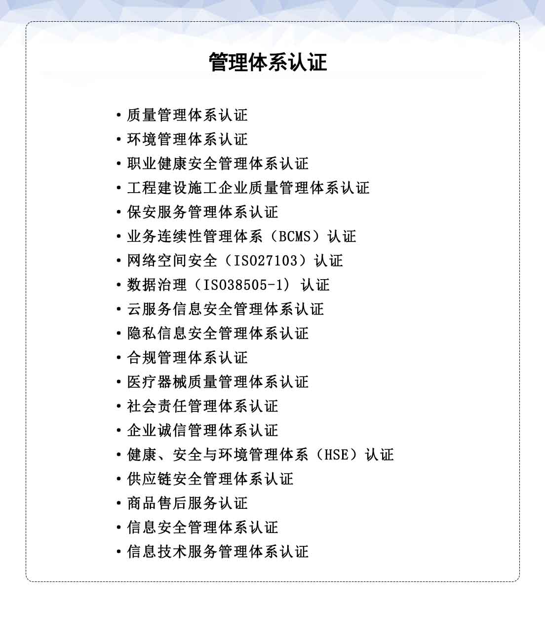 北京中質(zhì)晟檢測認(rèn)證公司可從事認(rèn)證業(yè)務(wù)一覽表